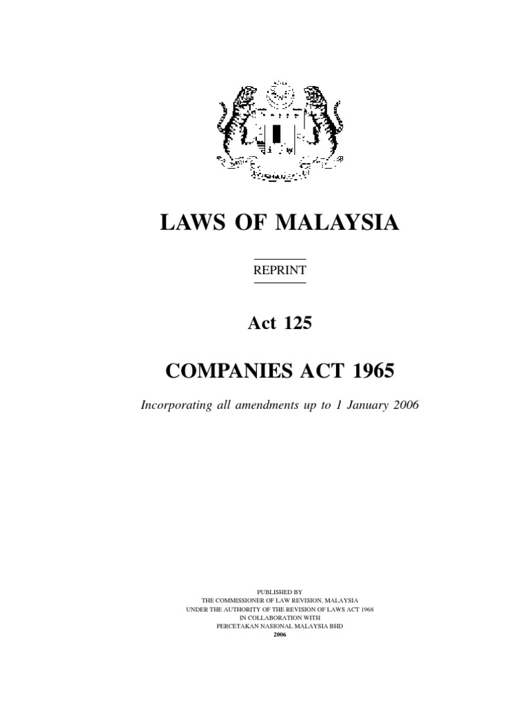 Malaysian Companies act-1965-(up to 2006) from image.slidesharecdn.com This act is repealed by act no. This act gives any person(s) the right to form any type of company or corporate organization and start operating a registered company. 8 administration of act and appointment of registrar of companies, etc. Incorporated on the 22nd day of april, 1994. 8a inspection of books of corporation Some amendments have not yet been incorporated. 61 of 1981] (#date 29:10:1966). Companies 23 laws of malaysia act 125 companies act 1965an act relating to companies.