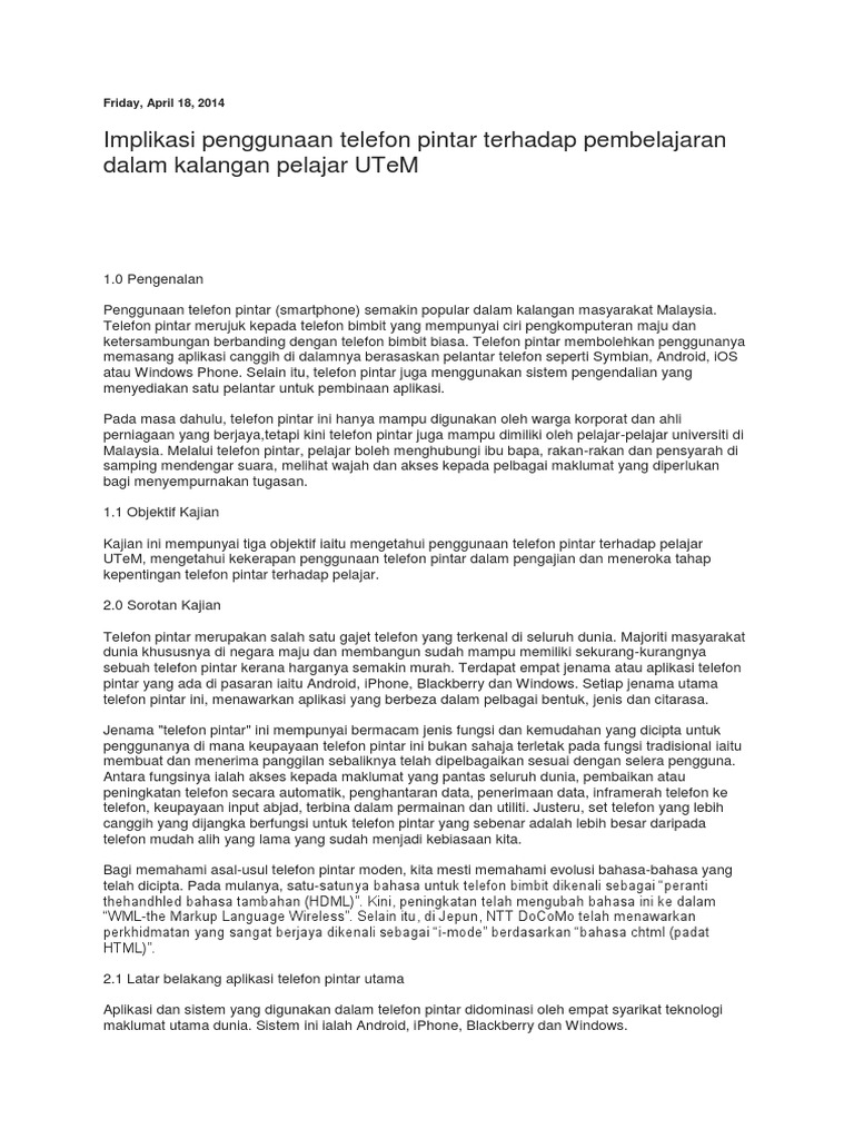 Banyak kajian telah membuktikan kaitan antara kemurungan dan pergantungan kepada telefon pintar. Jika dilihat pada statistik, pada tahun 2014, seramai 1.85 bilion individu di seluruh dunia mempunyai telefon pintar. Jika sebelum ini anda hanya berbual dan menulis komen. Terdapat banyak spekulasi mengenai kesan radiasi telefon pintar terhadap badan kita. Lokasi gps yang berpandukan google map akan memaparkan lokasi pemanggil. Telefon pintar kelas flagship bajet adalah bawah rm3000. Anda perlu tahu bahawa tidak semua pengguna telefon pintar mempunyai citarasa yang sama seperti anda. Kongsikan pendapat anda di ruangan komen di bawah. Ini kerana, saiz skrin telefon pintar hari ini semakin hari semakin besar, jadi ianya memerlukan kuasa bateri yang tinggi. Kini, telefon pintar dianggap sebagai satu trend gaya hidup para remaja, tidak kira sama ada dari golongan atasan atau kelas pertengahan. Pengaruh ict ke atas kesepaduan nasional malaysia. Kesan baik dan buruk penggunaan telefon pintar kepada pelajar, 28 ogos. Nombor itu meningkat kepada 2.32 bilion pada tahun 2017 dan dijangka akan mencecah 2.87 bilion pengguna menjelang tahun 2020.
