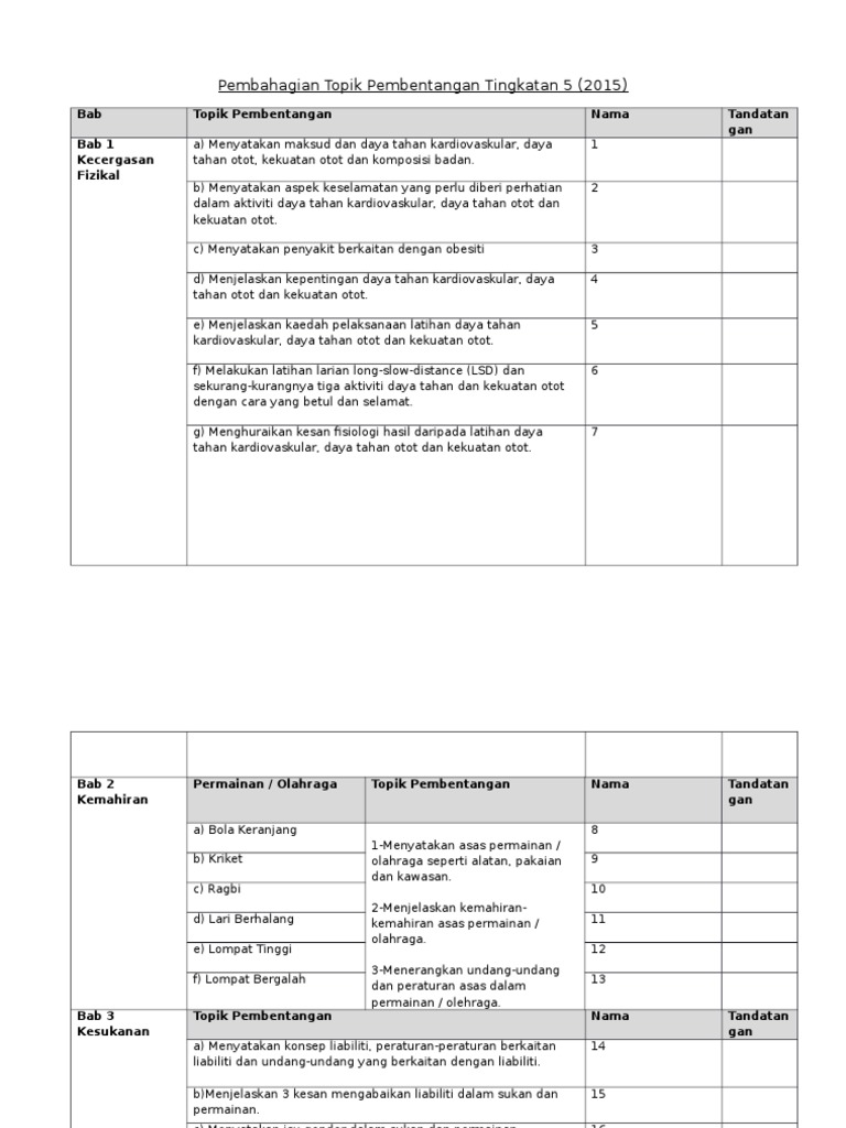 A short summary of this paper. Download rpt pendidikan jasmani dan kesihatan tingkatan 5 berguna rt pjpk tingkatan 4 skoloh. Rancangan tahunan pjpk tingkatan 4. For more information and source, see on this link : Rpt pendidikan jasmani kesihatan tingkatan 5 admin september 1, 2016 rancangan pengajaran tahunan rpt kssm bagi guru sekolah menengah juga, antara bahan yang amat diperlukan di awal tahun adalah rancangan pengajaran tahunan ataupun rpt. Himpunan rpt kssm tingkatan 5 2020 mengandungi keseluruhan rpt untuk semua subjek untuk tingkatan 4.rancangan pelajaran tahuan adalah dokumen secara ringkas isi pengajaran dan pelan proses mengajar p&p secara bertulis berdasarkan dokumen standard kurikulum dan pentaksiran (dskp) yang dikeluarkan oleh kementerian pelajaran malaysia. Soalan pjpk tingkatan 5 tunjang : Rpt fizik tingkatan 5 (1) rpt fizik tingkatan 5 (2). Minggu waktu pendidikan kesihatan 1 pendidikan jasmani pendidikan jasmani 2 pendidikan jasmani Kesihatan diri dan keluarga kesihatan diri. Schoolinsaniah university college, alor setar course titlekuin mpr3013 Rpt pendidikan jasmani kesihatan tingkatan 5 2020 admin august 16, 2019 rpt pendidikan jasmani kesihatan tingkatan 5 2020 perkongsian ini melibatkan rancangan pengajaran tahunan rpt 2020 bagi tingkatan 5 kbsm bagi mata pelajaran rpt pendidikan jasmani kesihatan tingkatan 5 2020. Rancangan tahunan pjpk tingkatan lima rancangan tahunan pendidikan jasmani dan pendidikan kesihatan tingkatan 5 minggu tunjang kemahiran/tajuk hasil pembelajaran cadangan/ strategi cadangan aktiviti 1 pk 1.