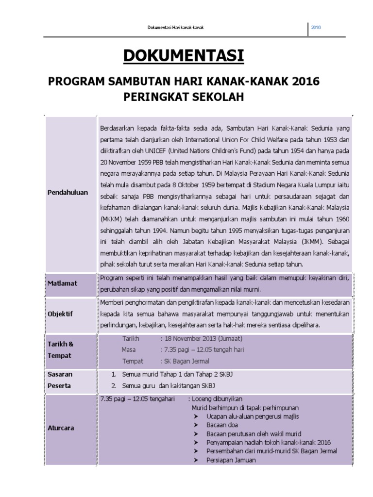 Laporan Hari Kanak Kanak from imgv2-2-f.scribdassets.com Hari ulang tahun kelahiran adalah salah satu hari yang begitu penting buat seseorang. Demikianlah senarai taman tema air yang anda boleh habiskan masa cuti sekolah bersama seisi keluarga. Maksimum sebanyak rm1,000 sekeluarga sebulan. Dilakukan dengan teknik wawancara, observasi, dan dokumentasi terhadap kegiatan pembelajaran. Penelitian ini berhasil menemukan bahwa: Marilah kita bersama bergaul sambil bercanda lupakan susah hilangkan lah payah ayolah bergembira. 0 ratings0% found this document useful (0 votes). Tujuan sambutan ini adalah untuk memberikan penghormatan dan pengiktirafan kepada generasi.